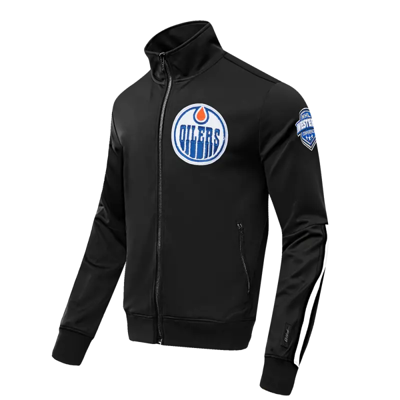 NHL EDMONTON OILERS CLASSIC CHENILLE MEN’S DOUBLE KNIT TRACK JACKET (BLACK)