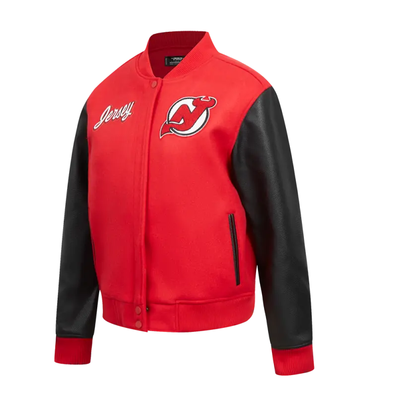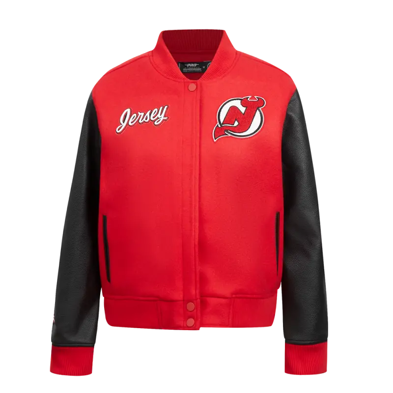 NHL NEW JERSEY DEVILS CLASSIC WOMEN’S WOOL VARSITY JACKET (RED\/BLACK)
