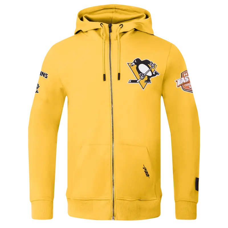 NHL PITTSBURGH PENGUINS CLASSIC CHENILLE DOUBLE KNIT FULL ZIP PULLOVER HOODIE (YELLOW)