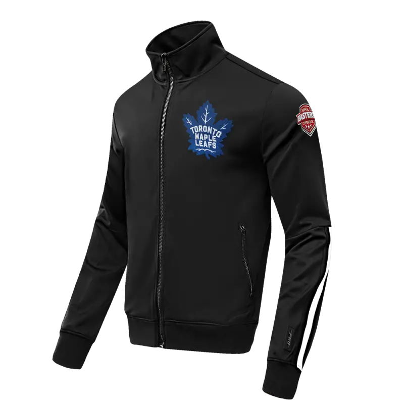 NHL TORONTO MAPLE LEAFS CLASSIC CHENILLE MEN’S DOUBLE KNIT TRACK JACKET (BLACK)