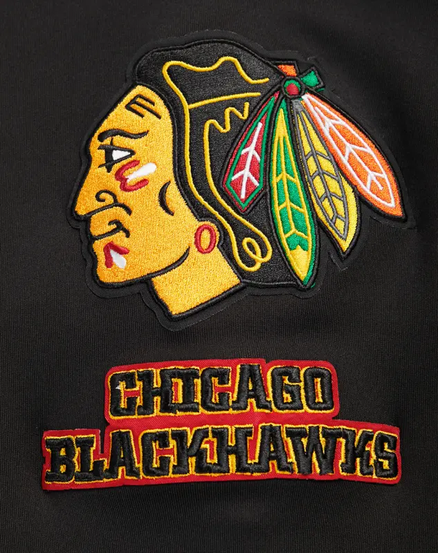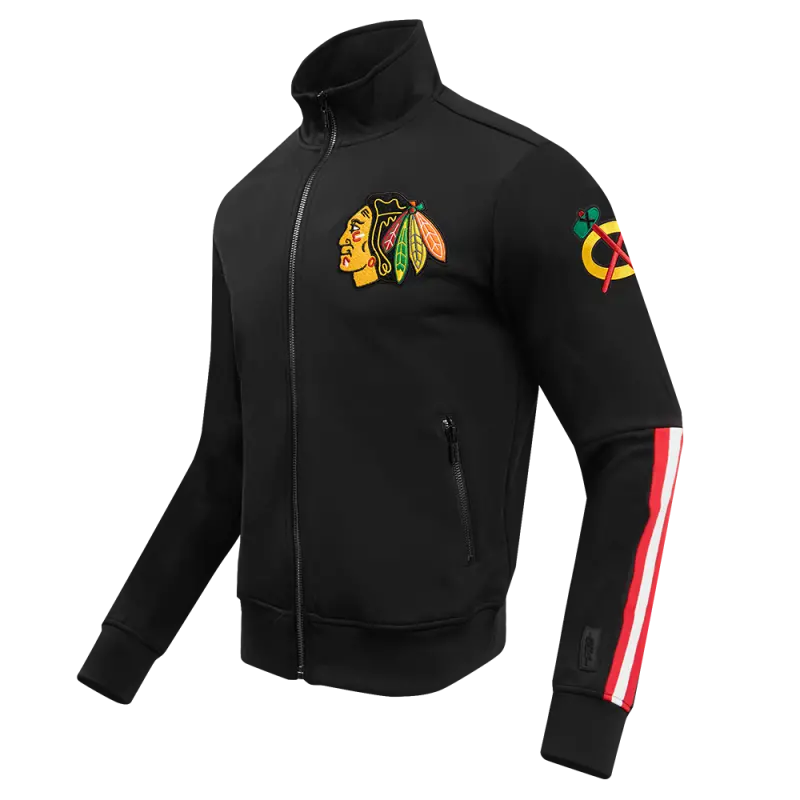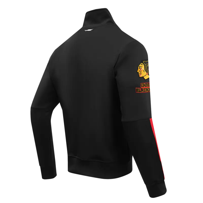 NHL CHICAGO BLACKHAWKS CLASSIC CHENILLE MEN’S TRACK JACKET (BLACK\/RED)